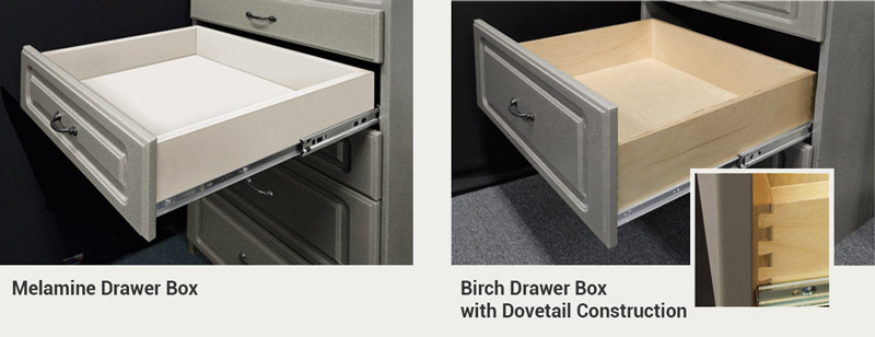 We offer drawers in the styles and sizes to create a solution that will solve almost any drawer need. Choose from our basic melamine-covered mdf drawer box (left image) or our top-of-the-line Baltic birch drawer box (right image) with superior dovetail construction for strength and durability.